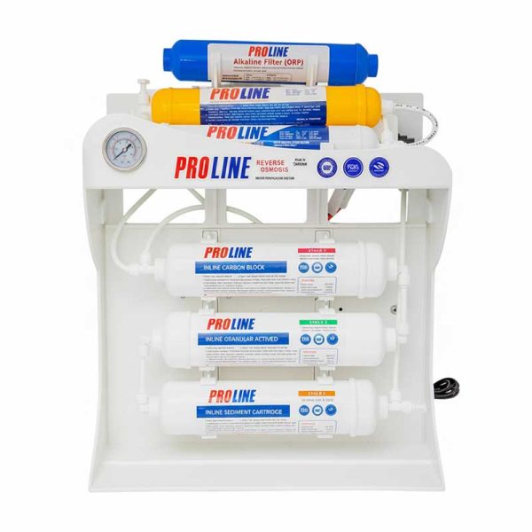 دستگاه تصفیه آب شش مرحله ای خانگی پرولاین (SIP1) با سیستم اسمز معکوس RO (ساخت کشور تایوان) در طی 7 مرحله توسط 7 فیلتر آب را تصفیه میکند.